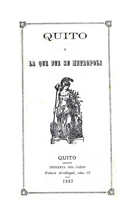 Quito, Ecuador : Imprenta del Clero. Palacio Arzobispal, núm. 62.