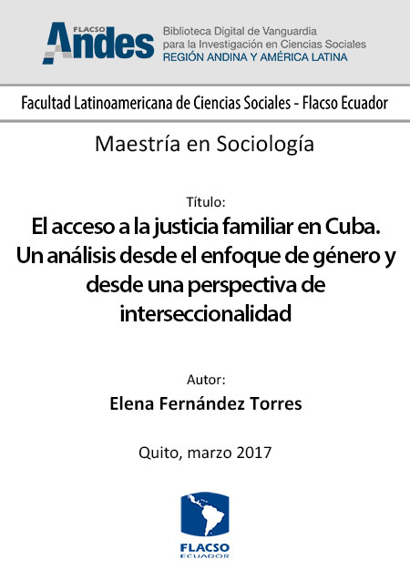 Fernández Torres, Elena. 2017. El acceso a la justicia familiar en Cuba. Un análisis desde el enfoque de género y desde una perspectiva de interseccionalidad. Tesis de maestría, Flacso Ecuador.