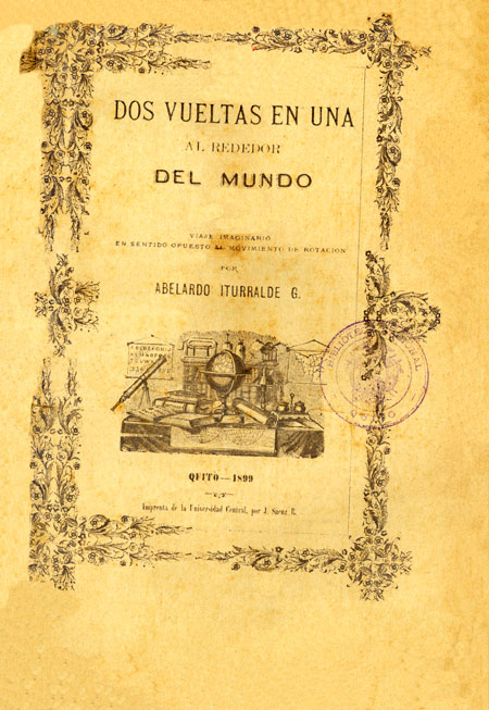 Iturralde G., Abelardo. 1899. Dos vueltas en una alrededor del mundo: viaje imaginario en sentido opuesto al movimiento de rotación. Quito, Ecuador : Imprenta de la Universidad Central por J. Sáenz R.
