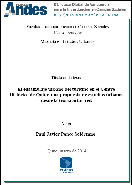 Ponce Solórzano, Paúl Javier. 2014. El ensamblaje urbano del turismo en el Centro Histórico de Quito: una propuesta de estudios urbanos desde la teoría actor-red. Tesis de maestría, Flacso Ecuador.