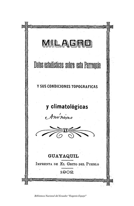 Milagro: Datos estadísticos sobre esta parroquia y sus condiciones topográficas y climatológicas. Guayaquil : Imprenta de El Grito del Pueblo.