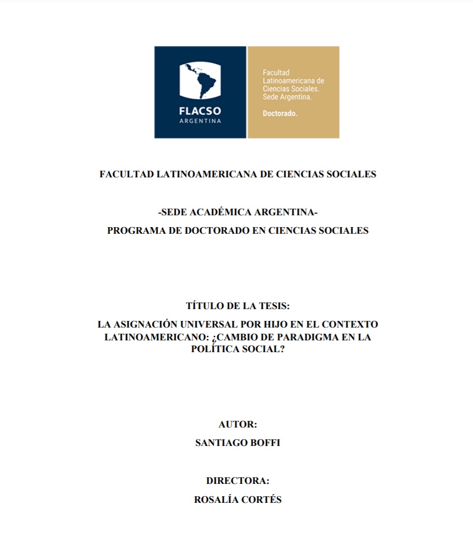 Boffi, Santiago. (2020). La asignación universal por hijo en el contexto latinoamericano : ¿cambio de paradigma en la política social?. Tesis de Doctorado. FLACSO. Sede Académica Argentina, Buenos Aires.