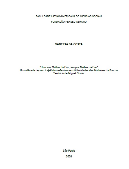 Costa, Vanessa da. 2020. “Uma vez Mulher da Paz, sempre Mulher da Paz” Uma década depois: trajetórias reflexivas e cotidianidades das Mulheres da Paz do Território de Miguel Couto. Tesis de maestría, Flacso Brasil.