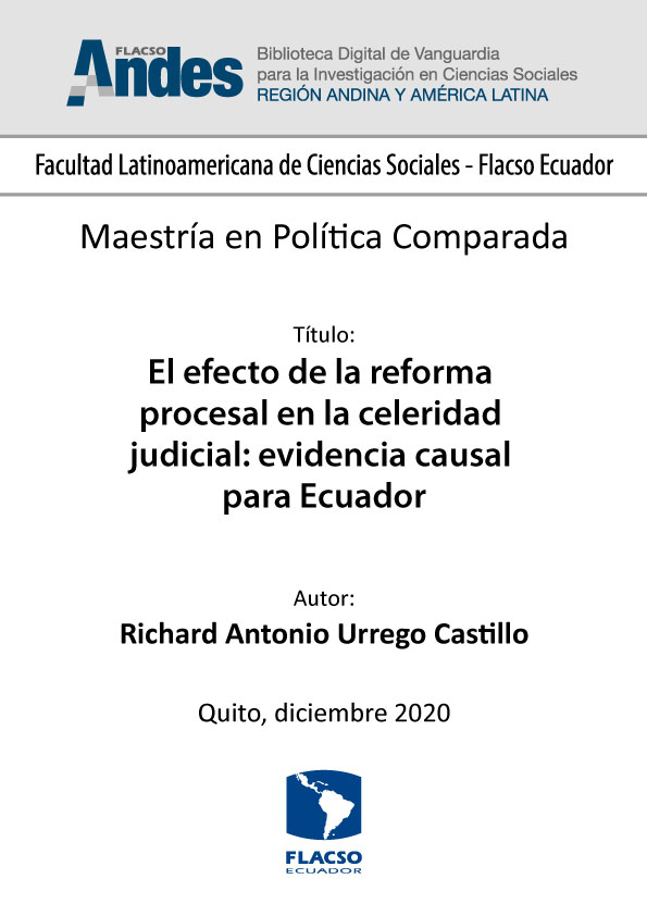 Urrego Castillo, Richard Antonio. 2020. El efecto de la reforma procesal en la celeridad judicial: evidencia causal para Ecuador. Tesis de maestrĂa, Flacso Ecuador.