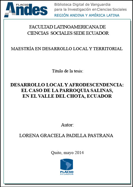 Padilla Pastrana, Lorena Graciela. 2014. Desarrollo local y afrodescendencia: El caso de la parroquia de Salinas, en el Valle del Chota, Ecuador. Tesis de maestría, FLACSO Sede Ecuador.