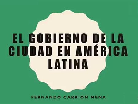 Carrión Mena, Fernando. 2022. El gobierno de la ciudad en América Latina. Centro Latinoamericano de Administración para el Desarrollo (CLAD), 22 de julio, archivo en MP4.