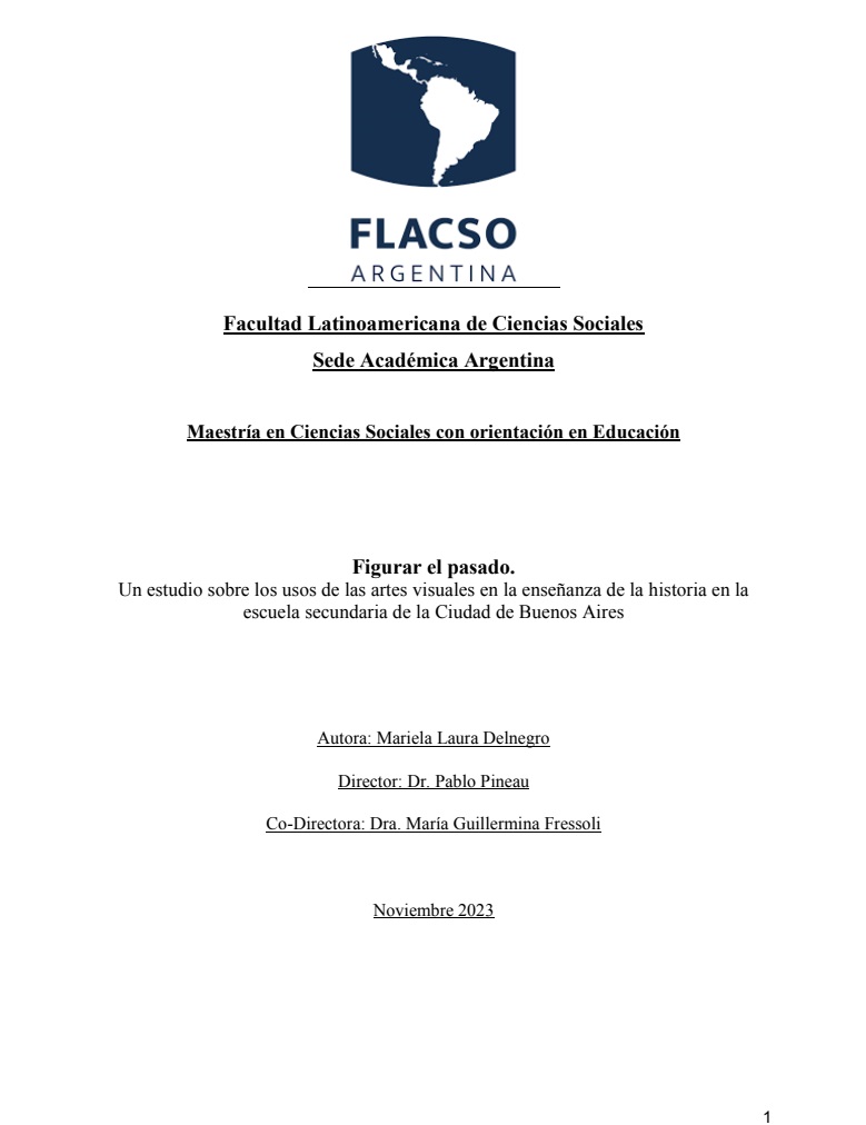 Delnegro, Mariela Laura (2023). Figurar el pasado: un estudio sobre los usos de las artes visuales en la enseñanza de la historia en la escuela secundaria de la Ciudad de Buenos Aires. Tesis de Maestría. FLACSO. Sede Académica Argentina, Buenos Aires.