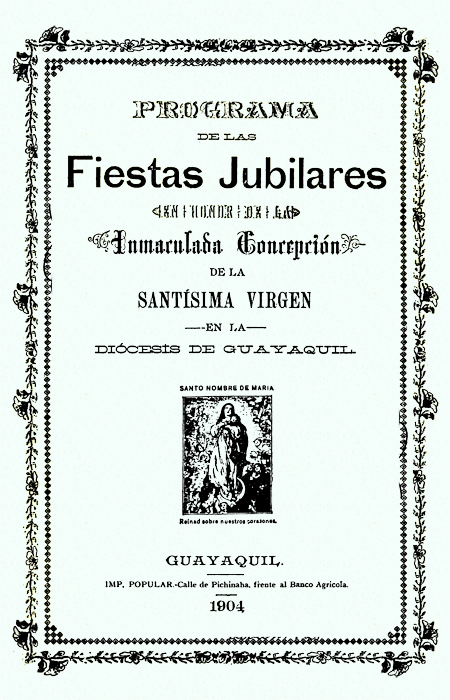 Álvarez Arteta, Segundo. 1904. Programa de las fiestas jubilares en honor de la Inmaculada Concepción de la Santísima Virgen en la Diócesis de Guayaquil. Guayaquil, Ecuador : Imp. Popular.