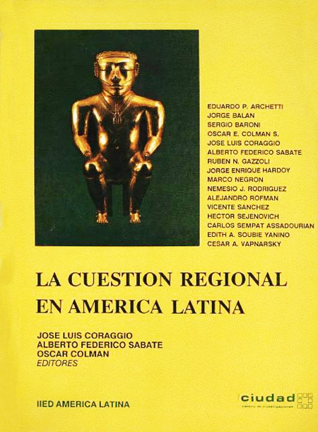 Archetti, Eduardo P., Jorge Balán, Sergio Baroni, Oscar E. Colman S., José Luis Coraggio, Alberto Federico Sabate, Rubén N. Gazzoli, Jorge Enrique Hardoy, Marco Negrón, Nemesio J. Rodríguez, Alejandro Rofman, Vicente Sánchez, Héctor Sejenovich, Carlos Sempát Assadourián, Edith A. Soubie Yanino y César A. Vapnarsky. 1989. La cuestión regional en América Latina. Editado por José Luis Coraggio, Alberto Federico Sabate y Oscar Colman. Quito: Centro de investigaciones CIUDAD / International Institute for Enviromental Development (IIED) América Latina.