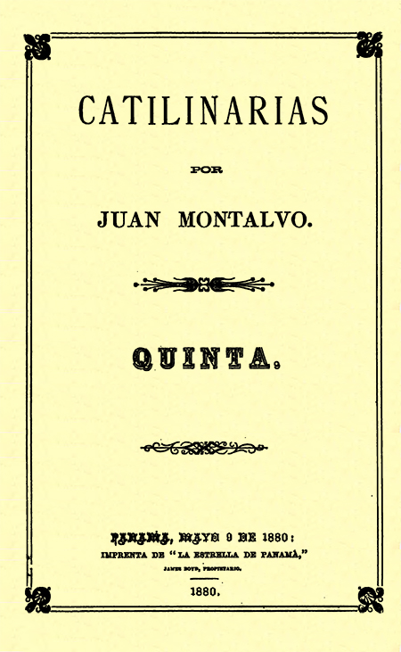Montalvo, Juan. 1880. Catilinarias. Quinta. Panamá, Colombia : Imprenta de "La Estrella de Panamá".