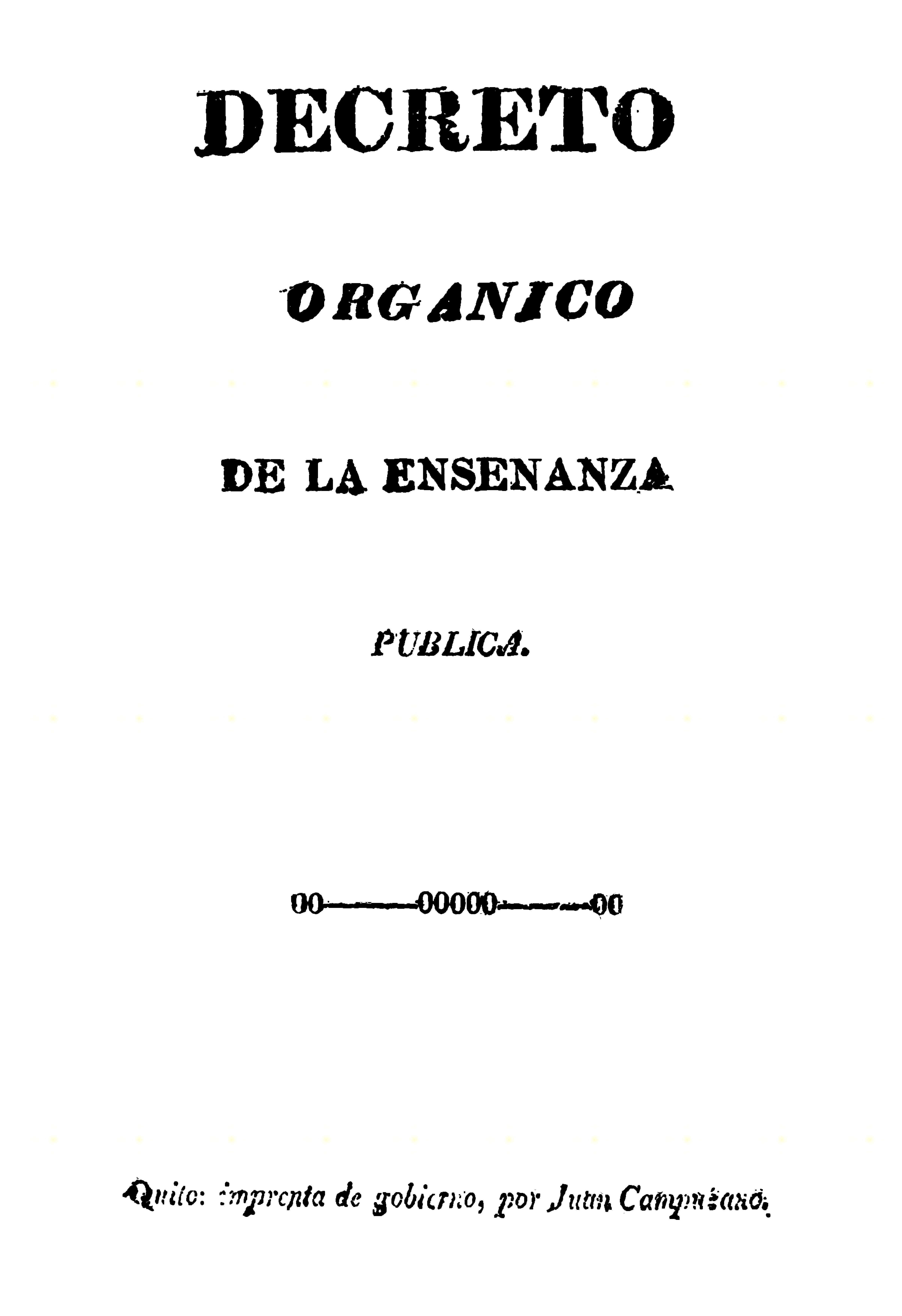 [1836]. Decreto orgánico de la enseñanza pública. Quito, Ecuador : Imprenta de Gobierno.