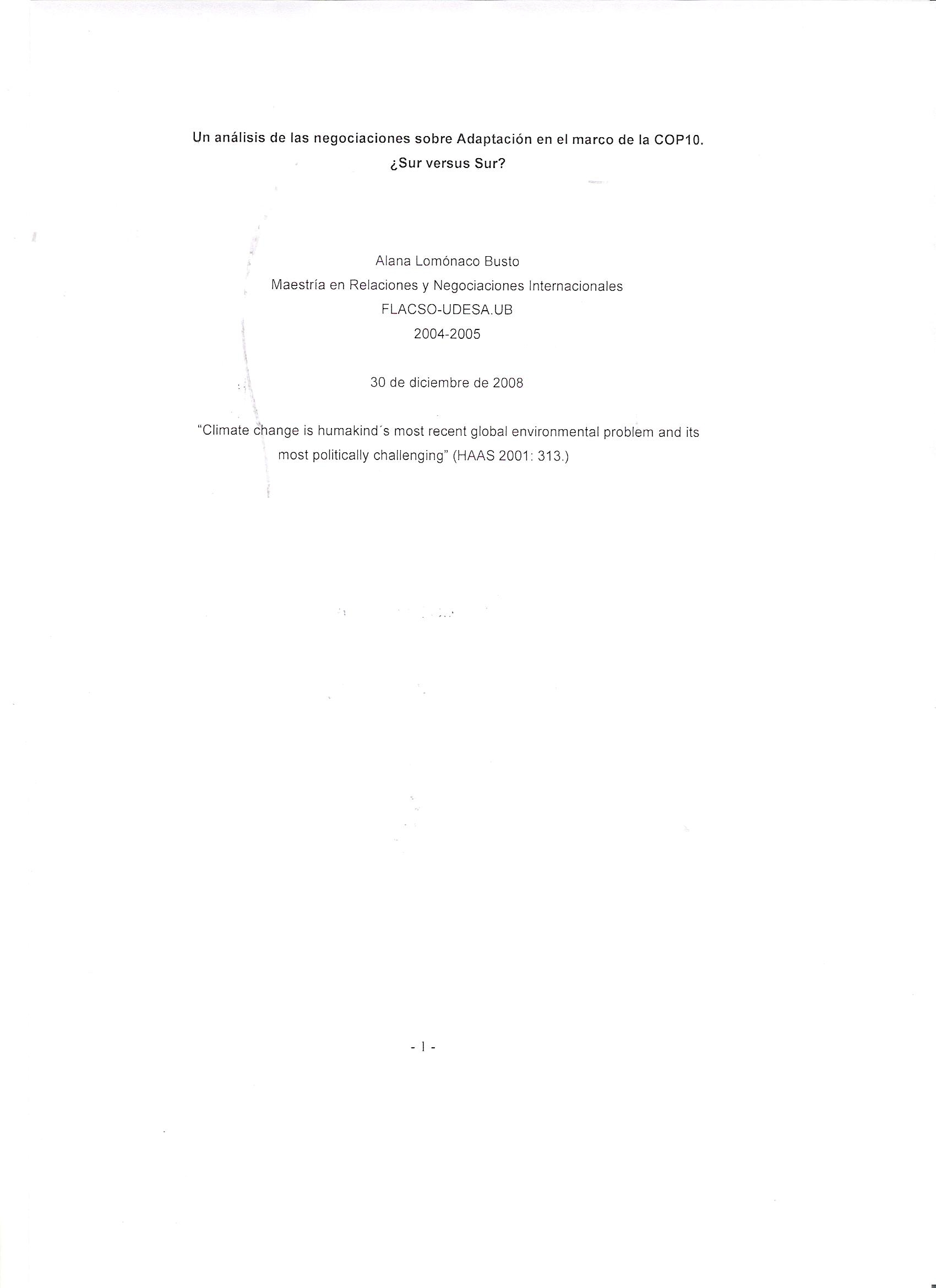 Lomónaco Busto, Alana P. (2009). Trabajo de investigación final: Un análisis de las negociaciones sobre adaptación en el marco de la COP10. ¿Sur versus Sur? Tesis de Maestría. FLACSO. Sede Académica Argentina, Universidad de San Andrés, Universitat de Barcelona, Buenos Aires.