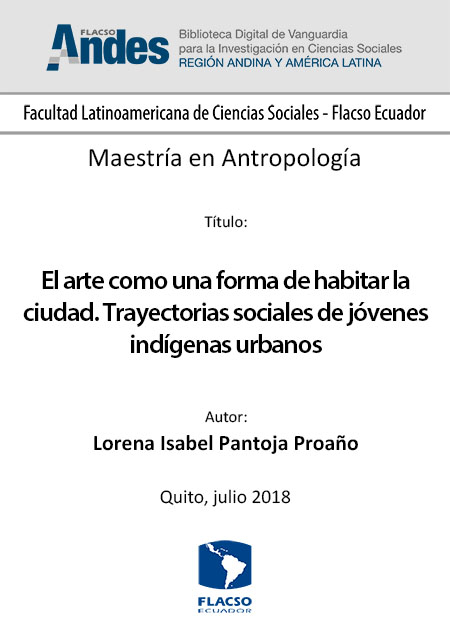 Pantoja Proaño, Lorena Isabel. 2018. El arte como una forma de habitar la ciudad. Trayectorias sociales de jóvenes indígenas urbanos. Tesis de maestría, Flacso Ecuador.