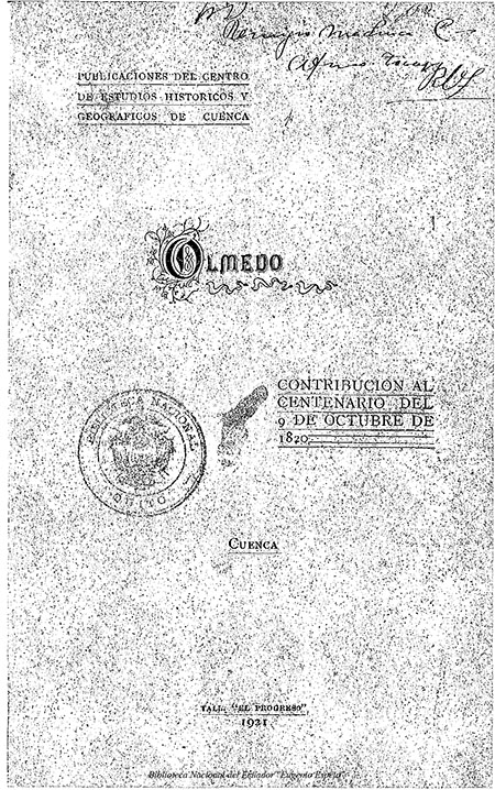 Crespo, Remigio. 1921. Olmedo. Contribución al Centenario del 9 de Octubre de 1820. Discurso. Quito : S.E.