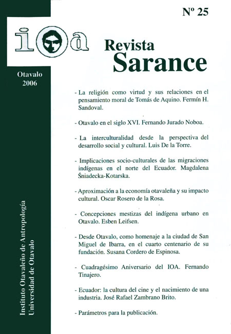 Sarance. Instituto Otavaleño de Antropología. [Otavalo] : IOA, (no. 25, diciembre 2006): 157 p.