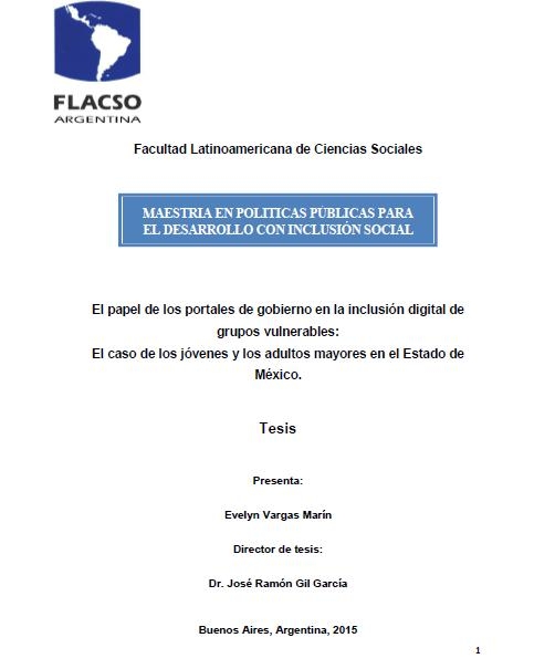Vargas Marín, Evelyn (2015). El papel de los portales de gobierno en la inclusión digital de grupos vulnerables : el caso de los jóvenes y los adultos mayores en el estado de México. FLACSO. Sede Académica Argentina, Buenos Aires.