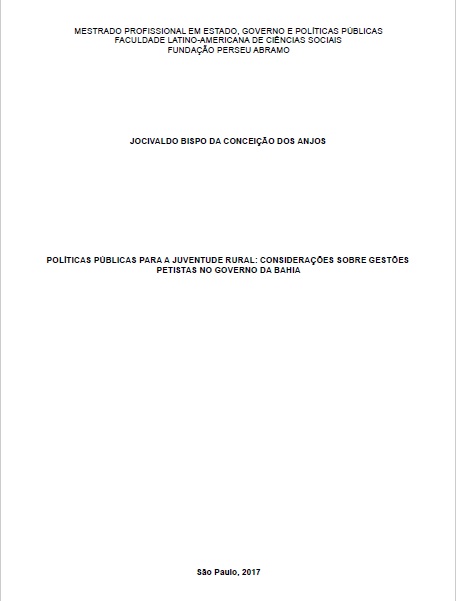 Conceição dos Anjos, Jocivaldo Bispo da. 2017. Políticas públicas para a juventude rural: considerações sobre gestões petistas no governo da Bahia. Tesis de maestría, Flacso Brasil.
