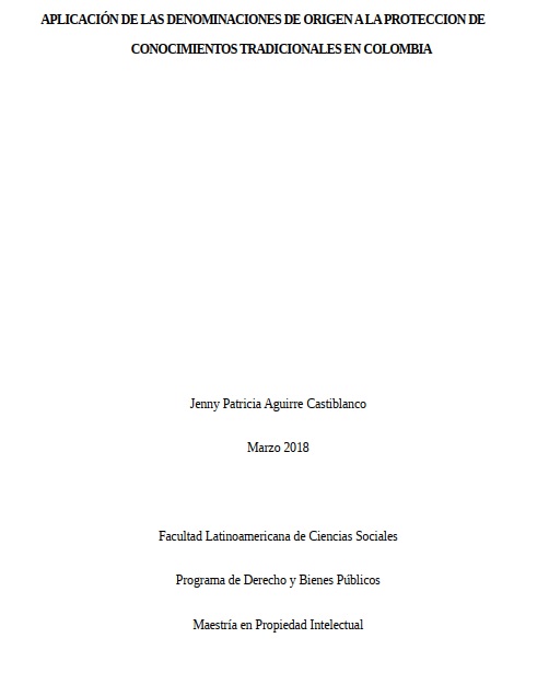 Aguirre Castiblanco, Aguirre Castiblanco (2018). Aplicación de las denominaciones de origen a la protección de conocimientos tradicionales en Colombia. FLACSO. Sede Académica Argentina, Buenos Aires.