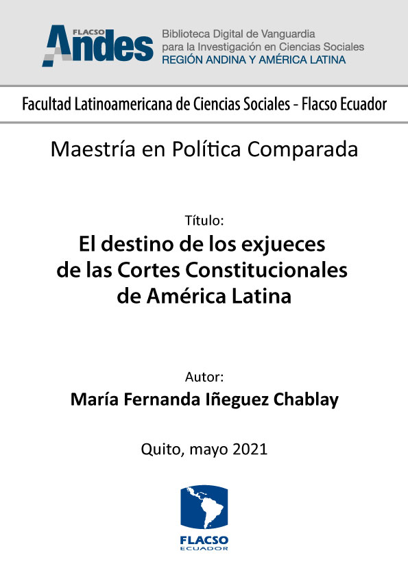 Iñeguez Chablay, María Fernanda. 2021. El destino de los exjueces de las Cortes Constitucionales de América Latina. Tesis de maestría, Flacso Ecuador.