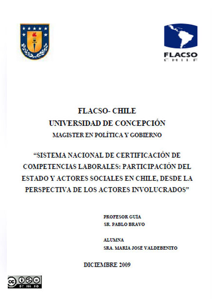 Valdebenito, M. J. (2009). Sistema Nacional de Certificación de Competencias Laborales : participación del estado y actores sociales en Chile, desde la perspectiva de los actores involucrados. (Tesis de Maestría en Política y Gobierno). FLACSO Chile, Santiago, Chile