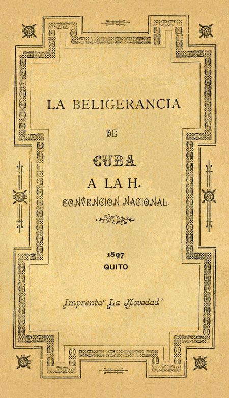 La beligerancia de Cuba a la H. Convención Nacional. 1897. Quito, Ecuador : Imprenta "La Novedad".
