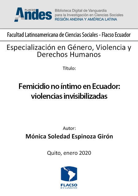 Espinoza Girón, Mónica Soledad. 2020. Femicidio no íntimo en Ecuador: violencias invisibilizadas. Tesina de especialización, Flacso Ecuador.