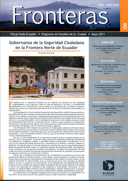 El gobierno de la seguridad ciudadana en las regiones de fronteras es una necesidad impostergable y una asignatura nueva en fase de definición. Sin duda, la consideración dominante en el conocimiento y en las políticas ha provenido de un enfoque nacional e internacional, donde las condiciones particulares de la frontera y sus habitantes han pasado a un segundo plano. En esa perspectiva, tres han sido las líneas prioritarias de política: a) en términos económicos, el establecimiento de aranceles y de mecanismos de control para ejecutarlos mediante aduanas y tributos; b) en cuanto a la defensa, el señalamiento de la garantía a la heredad territorial y a la soberanía nacional sobre la base de la militarización de la frontera y de la imposición de visas para el otro; y c) la seguridad pública, con la finalidad de preservar el orden público estatal a través del policiamiento para eliminar al enemigo interno.