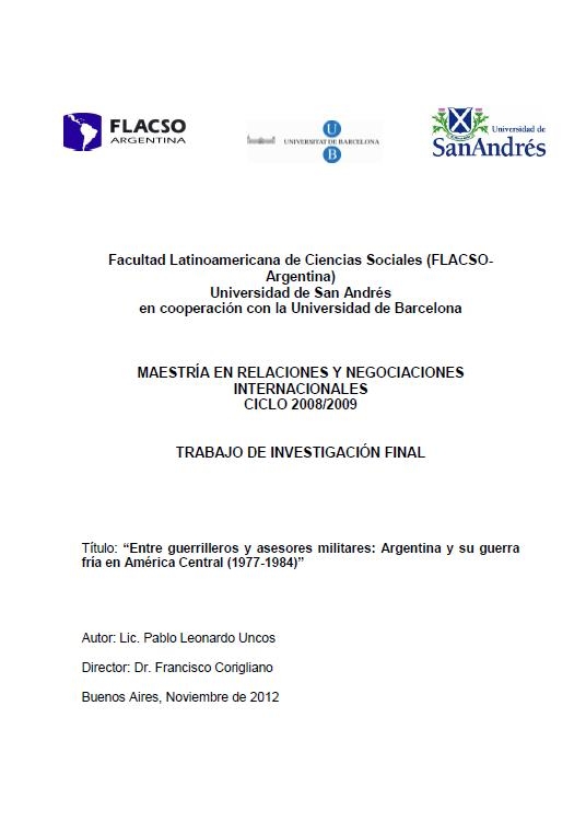Uncos, Pablo Leonardo (2013). Entre guerrilleros y asesores militares : Argentina y su guerra fría en América Central, 1977-1984. Tesis de Maestría. FLACSO. Sede Académica Argentina, Universidad de San Andrés, Buenos Aires.