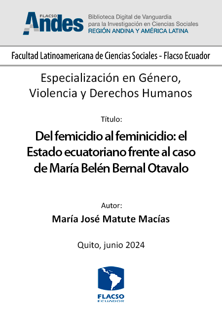 Matute Macías, María José. 2024. Del femicidio al feminicidio: el Estado ecuatoriano frente al caso de María Belén Bernal Otavalo. Tesina de especialización, Flacso Ecuador.