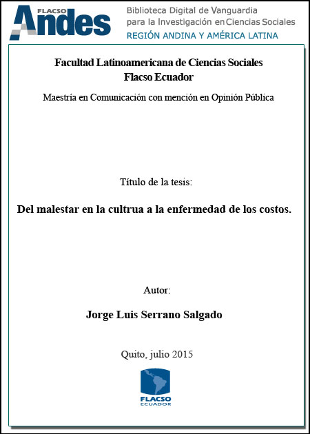 Serrano Salgado, Jorge Luis. 2015. Del malestar en la cultura a la enfermedad de los costos. Tesis de maestría, Flacso Ecuador.