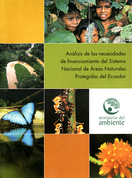 Ministerio de Ambiente. 2005. Análisis de las necesidades de financiamiento del sistema nacional de áreas naturales protegidas del Ecuador. Quito: Ministerio de Ambiente / Fondo Ambiental Nacional / The Nature Conservancy / EcoCiencia / Fundación Natura / Unión Mundial para la Naturaleza / USAID-Ecuador.