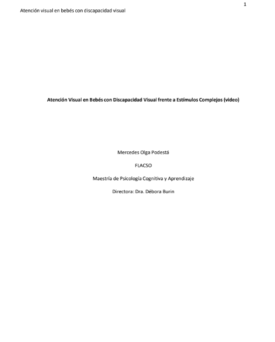 Podestá, Mercedes Olga (2024). Atención visual en bebés con discapacidad visual frente a estímulos complejos (video). Tesis de Maestría. FLACSO. Sede Académica Argentina.