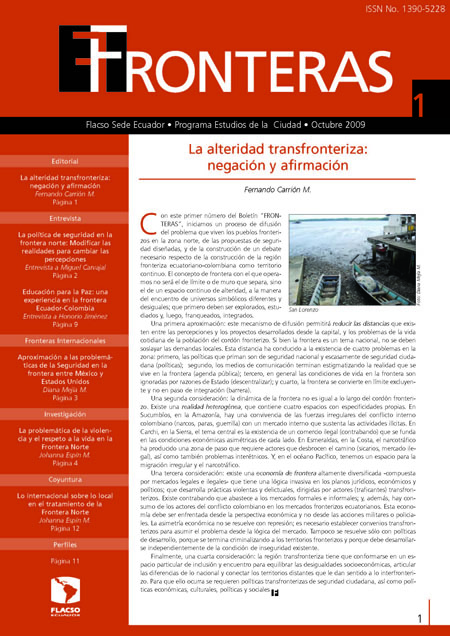 Fronteras. FLACSO sede Ecuador. Programa de Estudios de la Ciudad. , Quito: FLACSO, (no. 1, octubre 2009): 12 p.
