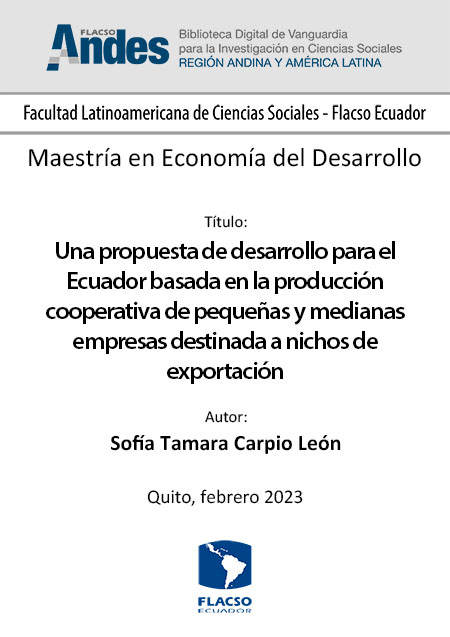 Carpio León, Sofía Tamara. 2023. Una propuesta de desarrollo para el Ecuador basada en la producción cooperativa de pequeñas y medianas empresas destinada a nichos de exportación. Tesis de maestría, Flacso Ecuador.
