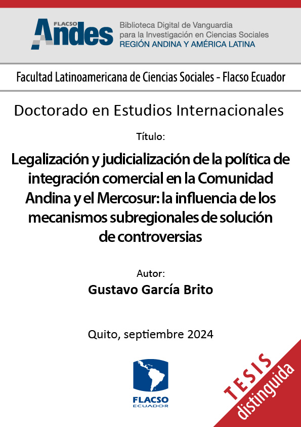 García Brito, Gustavo. 2024. Legalización y judicialización de la política de integración comercial en la Comunidad Andina y el Mercosur : la influencia de los mecanismos subregionales de solución de controversias. Tesis doctoral, Flacso Ecuador.