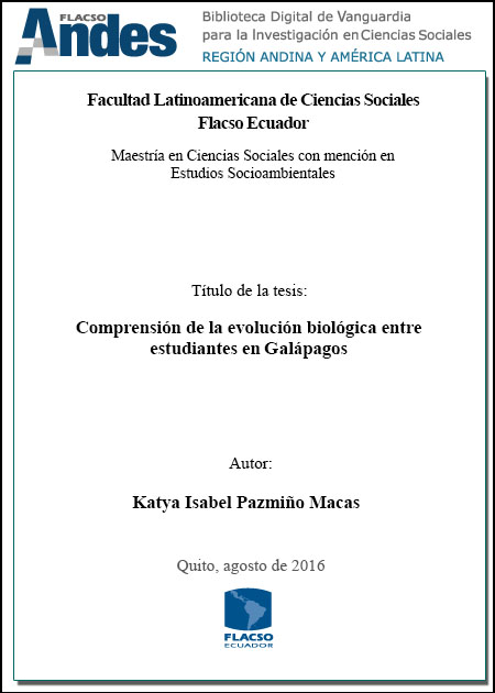 Soria Robalino, Adrián Fidel. 2016. Comprensión de la evolución biológica entre estudiantes en Galápagos. Tesis de maestría, Flacso Ecuador.