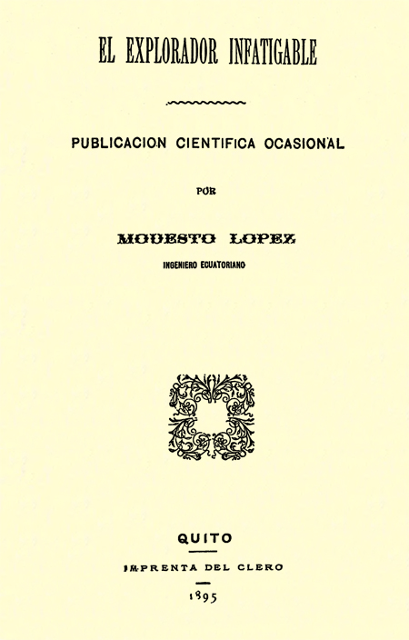 López, Modesto. 1895. El explorador infatigable : Publicación científica ocasional. Quito, Ecuador : Imprenta del Clero.