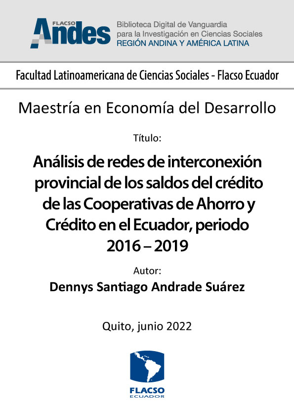 Andrade Suárez, Dennys Santiago. 2022. Análisis de redes de interconexión provincial de los saldos del crédito de las Cooperativas de Ahorro y Crédito en el Ecuador, periodo 2016 – 2019. Tesis de maestría, Flacso Ecuador.