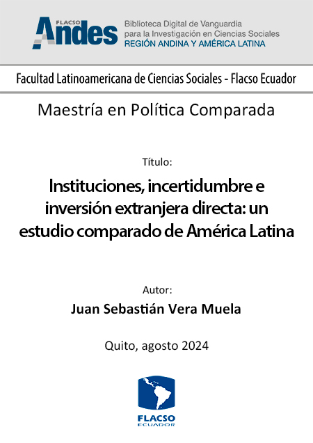 Vera Muela, Juan Sebastián. 2024. Instituciones, incertidumbre e inversión extranjera directa: un estudio comparado de América Latina. Tesis de maestría, Flacso Ecuador.