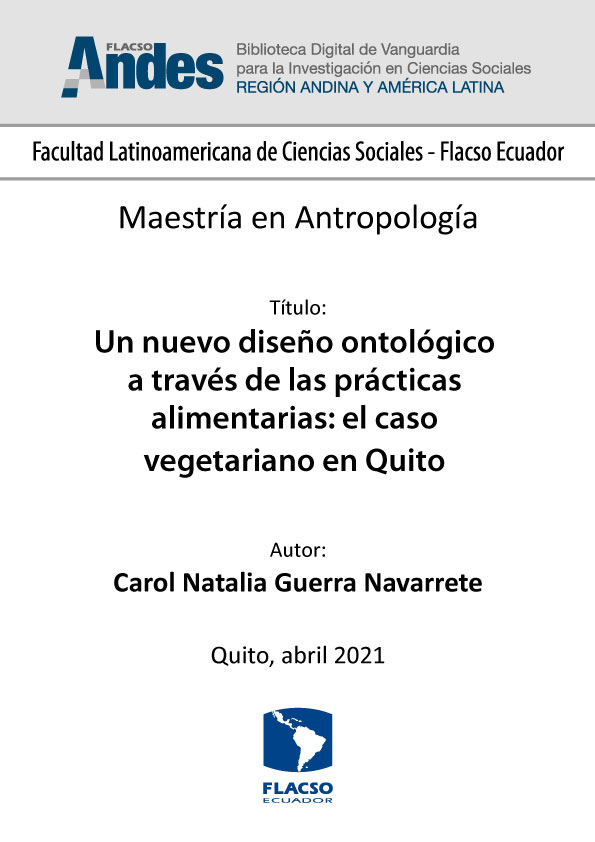 Guerra Navarrete, Carol Natalia. 2021. Un nuevo diseño ontológico a través de las prácticas alimentarias: el caso vegetariano en Quito. Tesis de maestría, Flacso Ecuador.