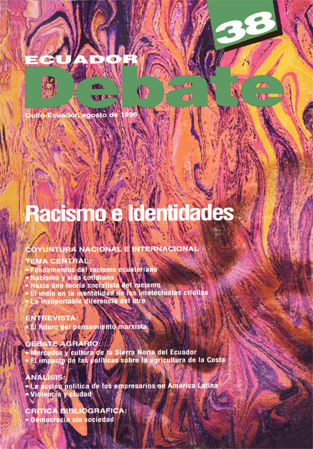 Ecuador Debate. Racismo e identidades. Centro Andino de Acción Popular. Quito: CAAP, (no. 38, agosto 1996): 210 p. ISSN: 1012-1498