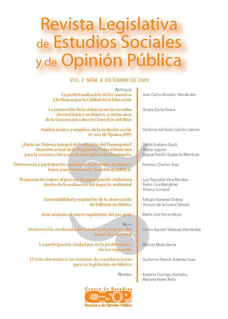 Revista Legislativa de Estudios Sociales y de Opinión Pública. México, D.F., Centro de Estudios Sociales y de Opinión Pública de la Cámara de Diputados. (Volumen 2, no. 4, diciembre 2009): 348 p.