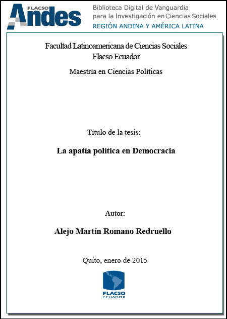 Romano Redruello, Alejo Martín. 2015. La apatía política en democracia. Tesis de maestría, Flacso Ecuador.