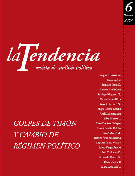 La Tendencia. Revista de Análisis Político. Golpes de timón y cambio de régimen político. ILDIS - FES. Quito: FES-ILDIS, (no. 06, noviembre 2007) : 115 p. ISSN 13902571
