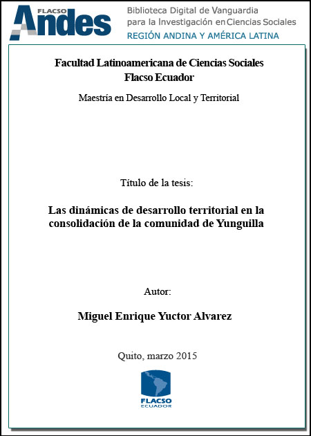 Yuctor Alvarez, Miguel Enrique. 2015. Las dinámicas de desarrollo territorial en la consolidación de la comunidad de Yunguilla. Tesis de maestría, Flacso Ecuador.