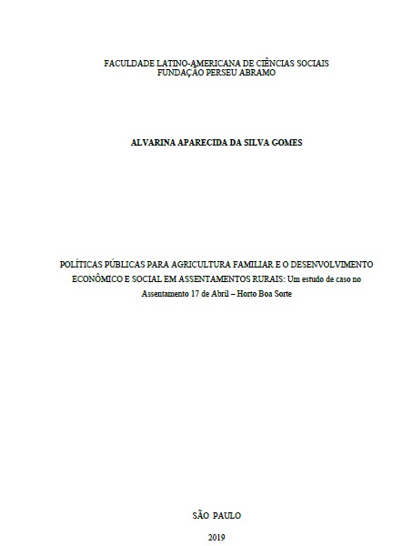 Silva Gomes, Alvarina Aparecida da. 2019. Políticas Públicas para agricultura familiar e o desenvolvimento econômico e social em assentamentos rurais: um estudo de caso no assentamento 17 de abril – Horto Boa Sorte. Tesis de maestría, Flacso Brasil.