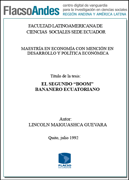 Maiguashca Guevara, Lincon (1992). El segundo "boom" bananero ecuatoriano. Maestría en Economía; FLACSO - Sede Ecuador. Quito. 85 p.