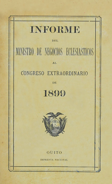 [ s.n ]. 1899. Informe del Ministro de Negocios Eclesiásticos al Congreso Extraordinario de 1899. Quito, Ecuador : Imprenta Nacional
