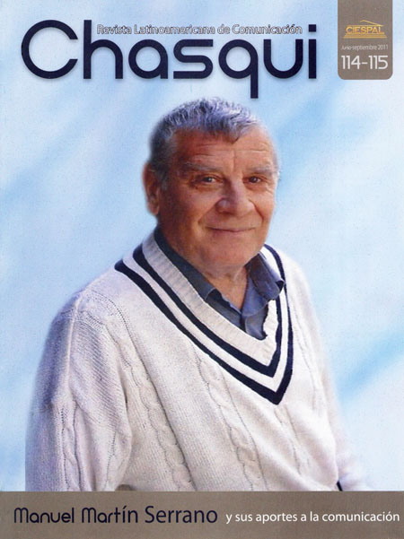 Chasqui Revista Latinoamericana de Comunicación. Manuel Martín Serrano y sus aportes a la comunicación. Centro Internacional de Estudios Superiores de Comunicación para América Latina (CIESPAL). Quito : CIESPAL, (no. 114-115, junio-septiembre 2011): 211 p. ISSN: 1390-1079.