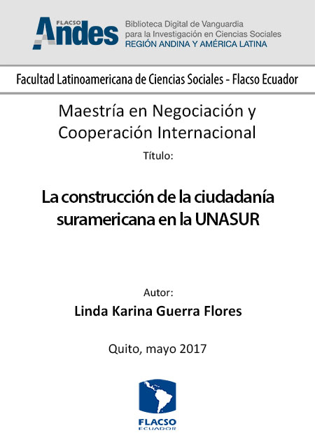 Guerra Flores, Linda Karina. 2017. La construcción de la ciudadanía suramericana en la UNASUR. Tesis de maestría, Flacso Ecuador.